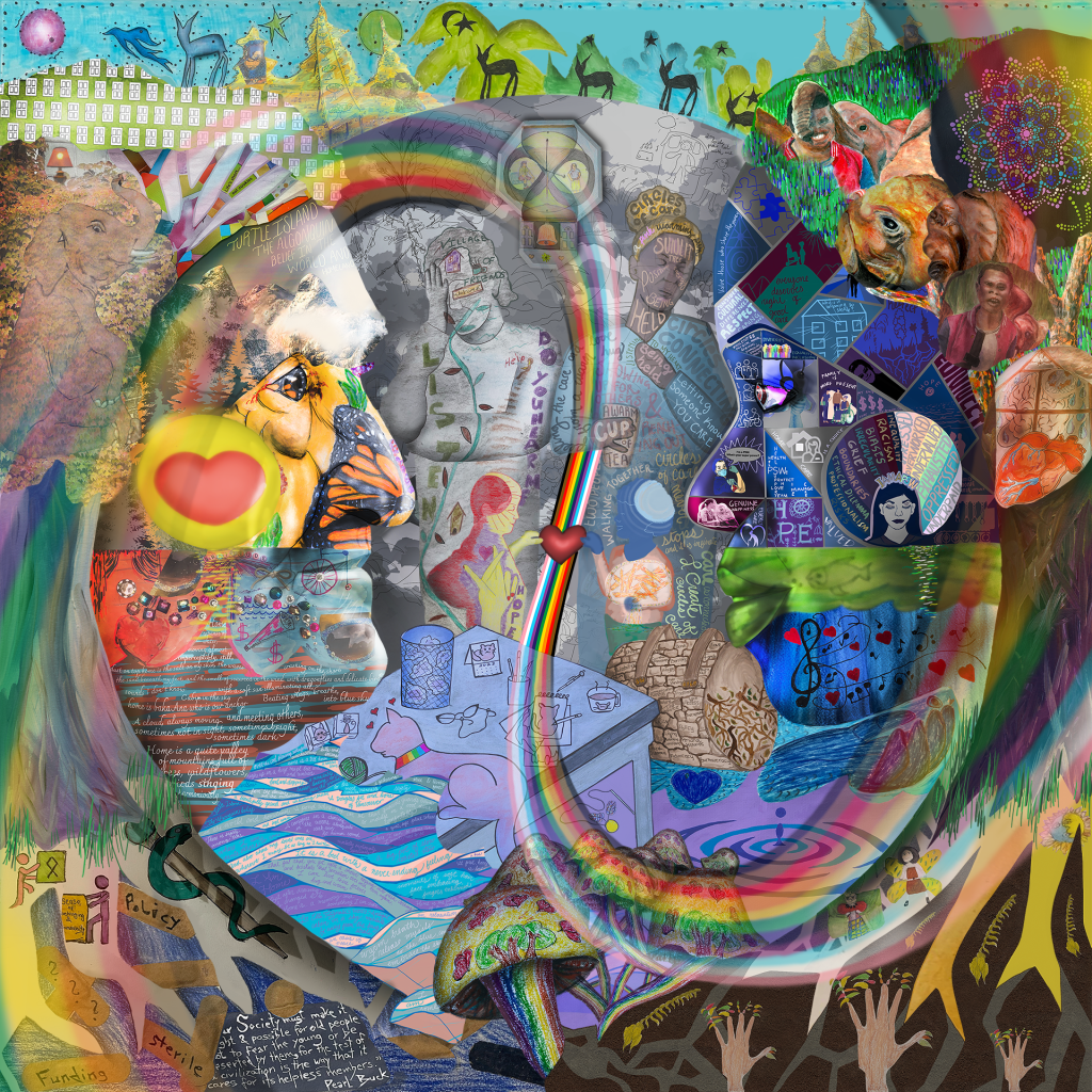 Fostering Dialogues was an arts-based action research project that brought together LGBTQ older adults and personal support homecare workers from Ontario in a virtual 12-week arts & dialogue program. This program explored themes of home, care, and futures of community-based care through facilitated conversations, art-making, and co-creation of a digital mural. This research was funded by a CIHR Catalyst Grant and was a collaboration between Egale Canada and social artist Melanie Schambach.
